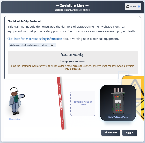 True effectiveness emerges when courses are student-centered. This means content is relevant, allows for personal pacing, and provides autonomy. Empowered learners are more motivated and invested in the outcome. Central to this model is interaction. Passive reading leads to low retention. Instead, incorporating simulations, scenario-based decision points, and reflective exercises transforms learners from spectators into active participants, practicing skills in a safe environment and solidifying new mental models. The Electrical Awareness Practice Slide is a Good Example